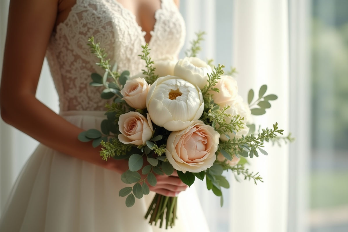 • Bouquet de mariée : la pièce phare, en accord avec la robe et l’esprit du mariage
